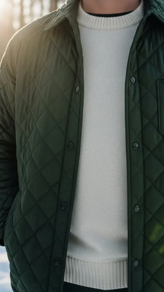 Quilted jackets offer warmth while staying thin. Layer one over a light sweater for mild winter days. Add jeans or cargo pants. Pair with lined boots for colder temperatures. Quilted jackets often go on sale mid-season.