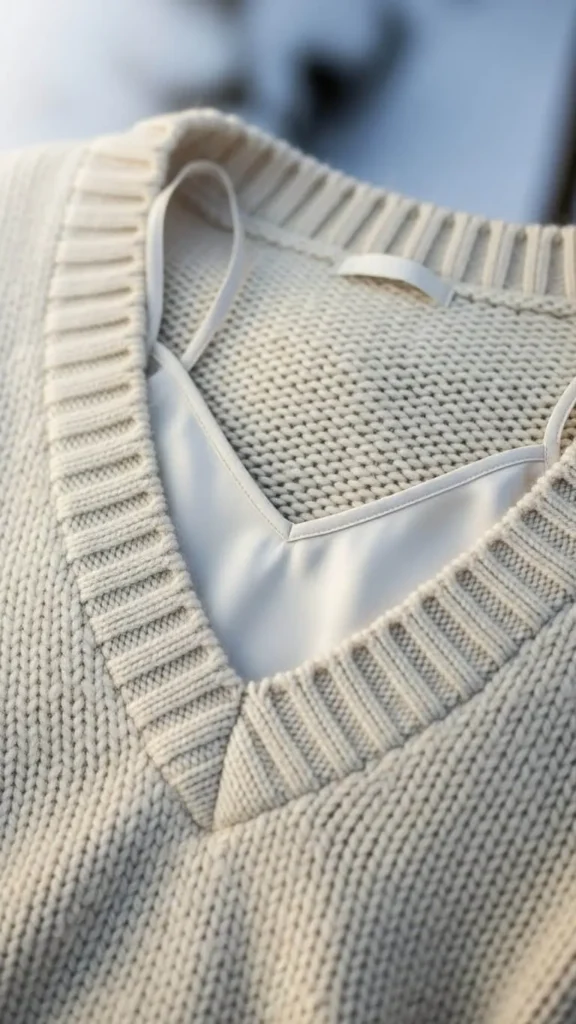 A silk camisole adds warmth without thickness. Layer under a wool sweater to stay comfortable indoors and outdoors. Pair with wide-leg trousers or jeans. Satin camisoles work as an affordable alternative and still sit smoothly under knits.