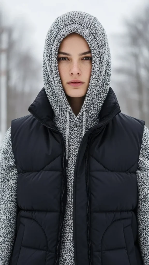 5. Sleek Puffer Vest Over a Knit Hoodie