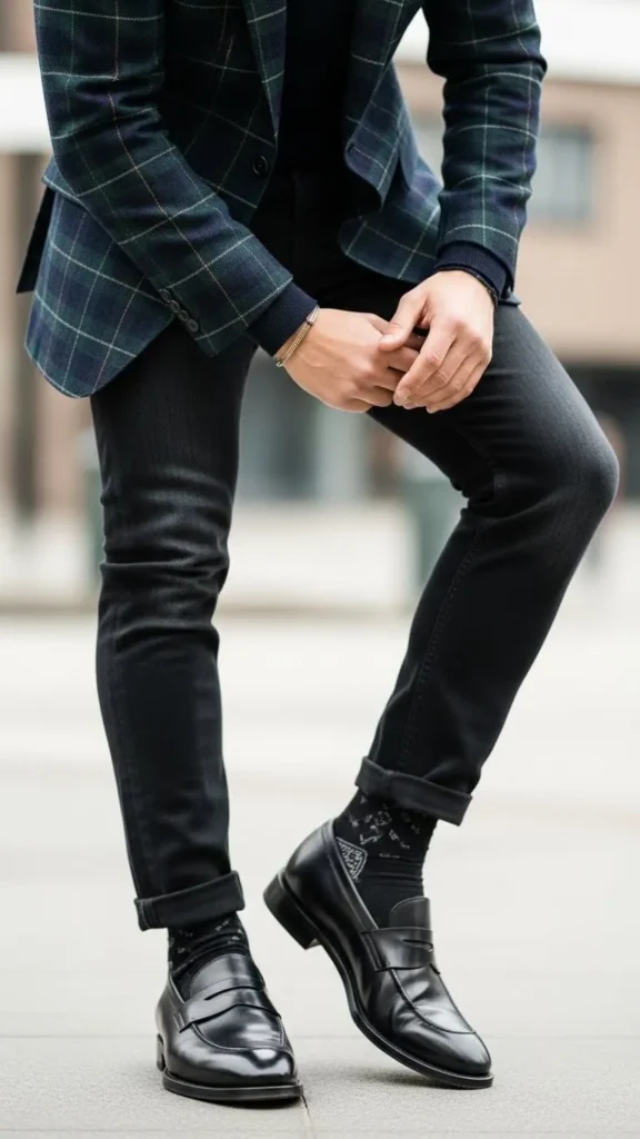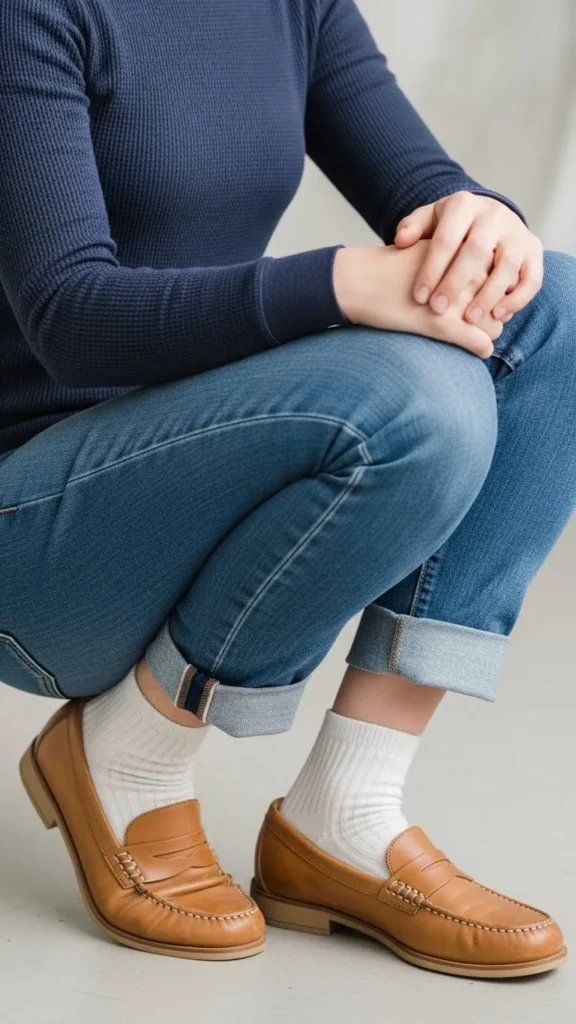 1. Classic Loafers with Wool Socks & Slim Jeans