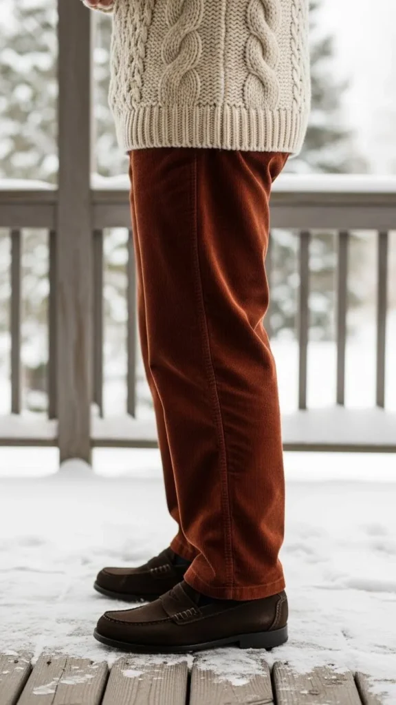 2. Loafers with Corduroy Pants & Chunky Knits