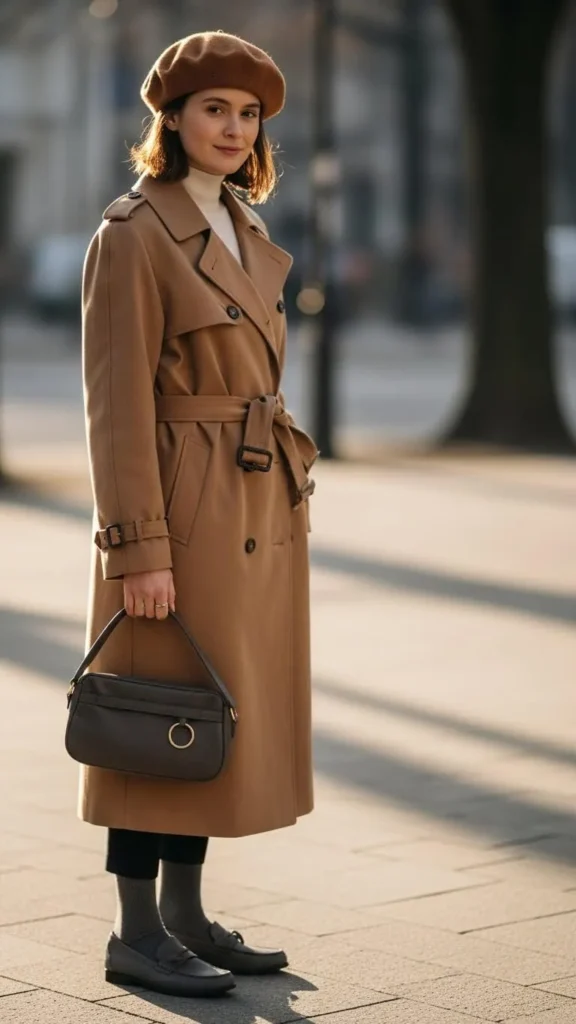 22. Loafers with Wool Beret & Trench Coat