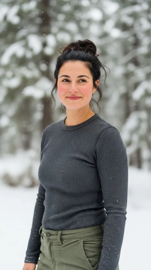 Thermal tops keep warmth close without bulk. Cargo pants allow movement and hold up well during busy days.