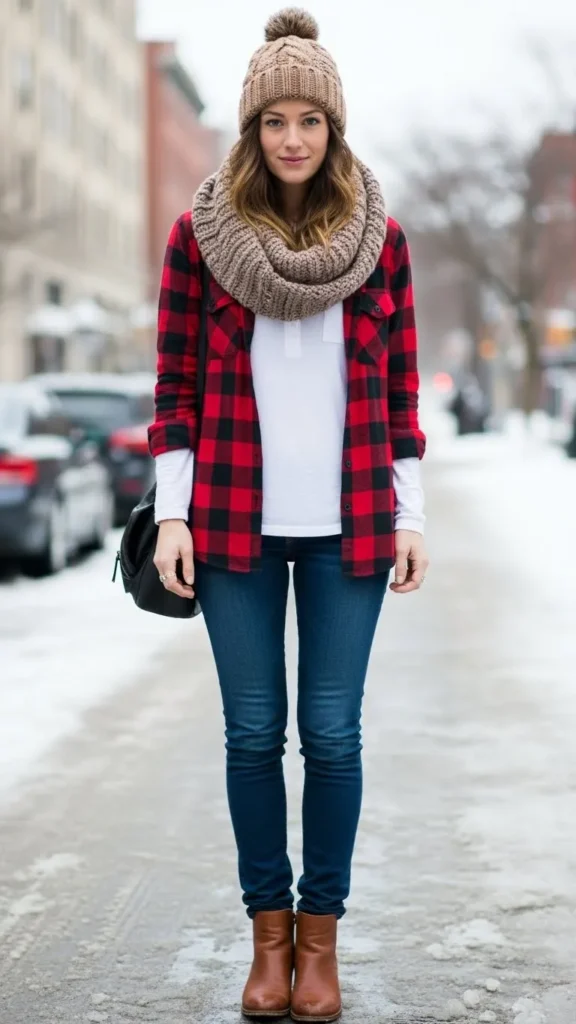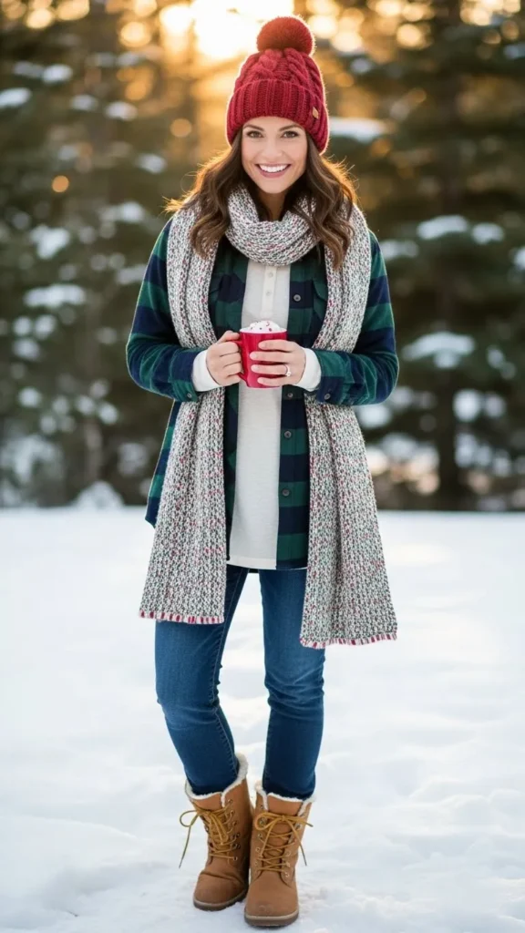 Start with jeans and a sweater. Add a beanie and scarf. Accessories change the whole look. Budget tip: thrift scarves for variety. This outfit feels warm and easy.