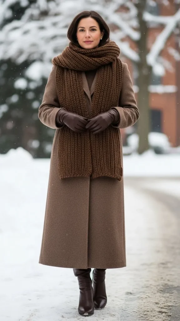 Brown tones feel cozy and rich. Mix light and dark shades. Knit tops with brown pants work well. Budget tip: mix items you already own. This look feels thoughtful without effort.