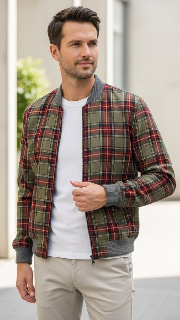 14. Plaid Bomber Jacket with Neutral Basics