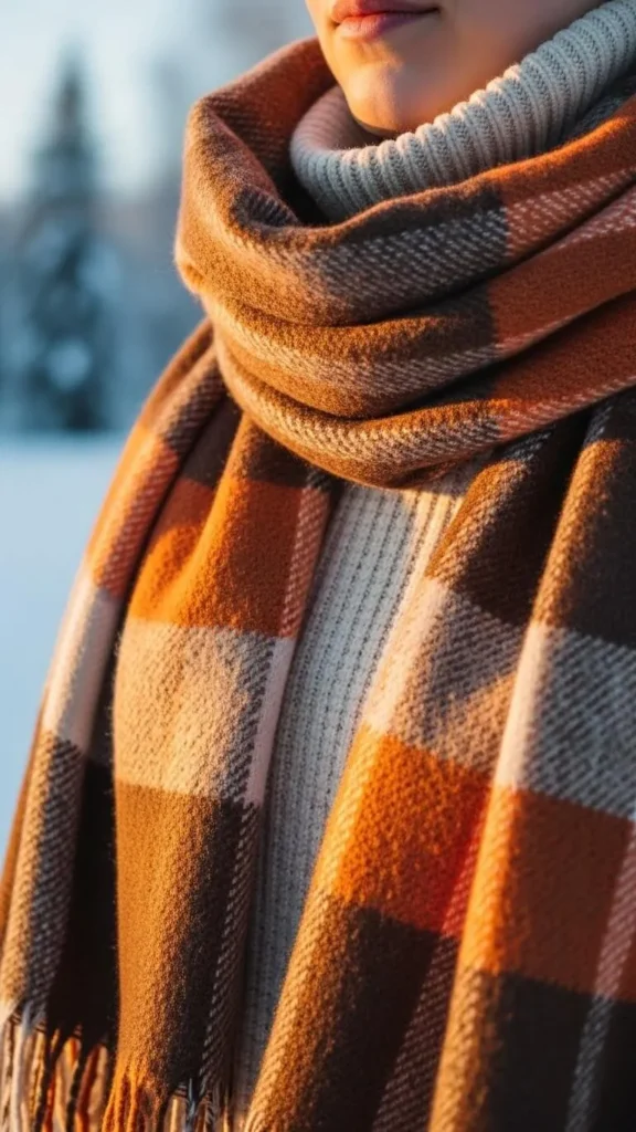 A large plaid blanket scarf doubles as a wrap. Use it to cover your shoulders when indoors or outside. This idea adds warmth and style without needing an extra jacket. Select scarves with soft fabrics and finishing touches for longevity. Sewing on large buttons allows you to turn it into a poncho easily.