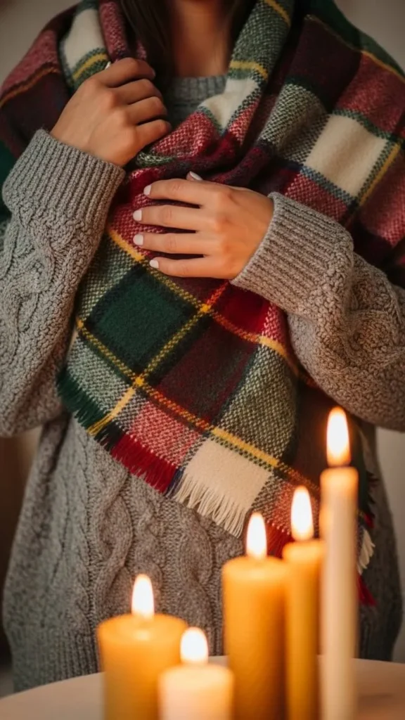 Wrap yourself in an oversized plaid scarf to add warmth and pattern without much effort. Use neutral sweaters underneath like beige, grey, or white to keep your look soft and cozy. Scarves are budget-friendly and great for DIY customization; sew on tassels or fringe to freshen an old one. This look is perfect for chilly walks or layering under coats.