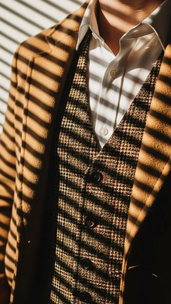 A plaid wool vest layers well under coats or over button-downs for subtle winter warmth. It’s often cheaper than full coats and can freshen old outfits. Look to thrift or outlet stores for options and consider adding pockets to vests for practical style. A simple vest adds character and polish.