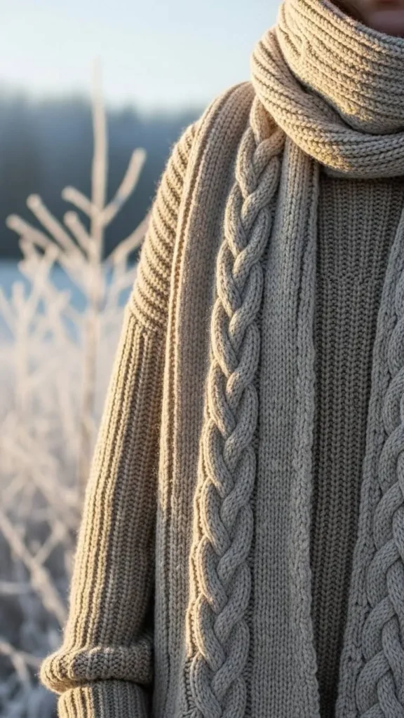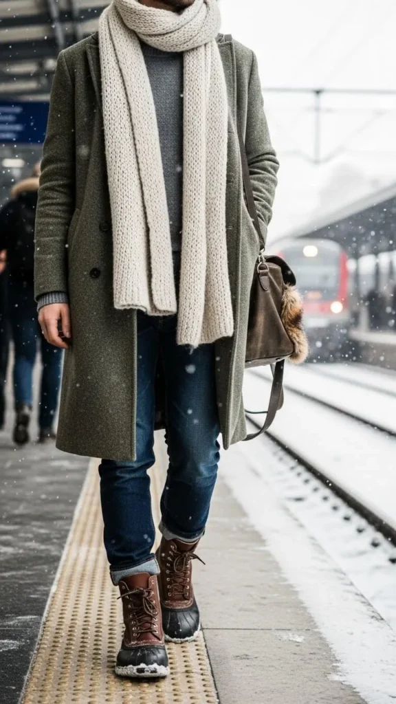 Oversized sweaters feel warm while letting you move freely. Pair yours with skinny jeans or leggings for balance. A thick scarf adds warmth and creates a stylish contrast. Choose wool or chunky knits for extra comfort. If you’re on a budget, repurpose an old sweater by adding a homemade scarf—knit one or cut fleece fabric into a long strip. This outfit works well for casual tours, coffee runs, or long car rides.