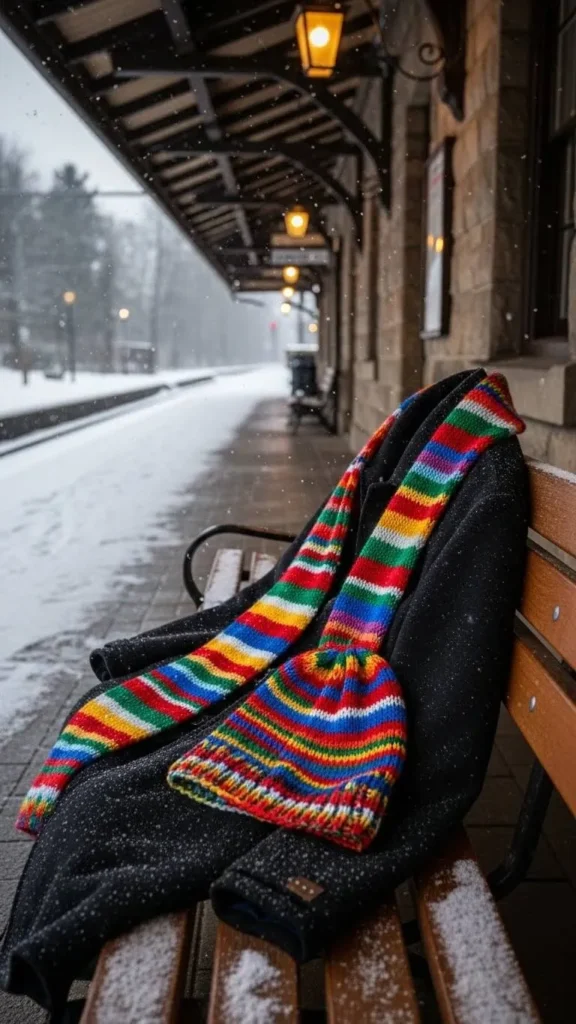 Accessories can transform simple layers. Wear a comfy coat and add a bold scarf and beanie. This adds colour and warmth. You can reuse old scarves or make a new one from fleece fabric. This outfit works for travel photos and walks around town.