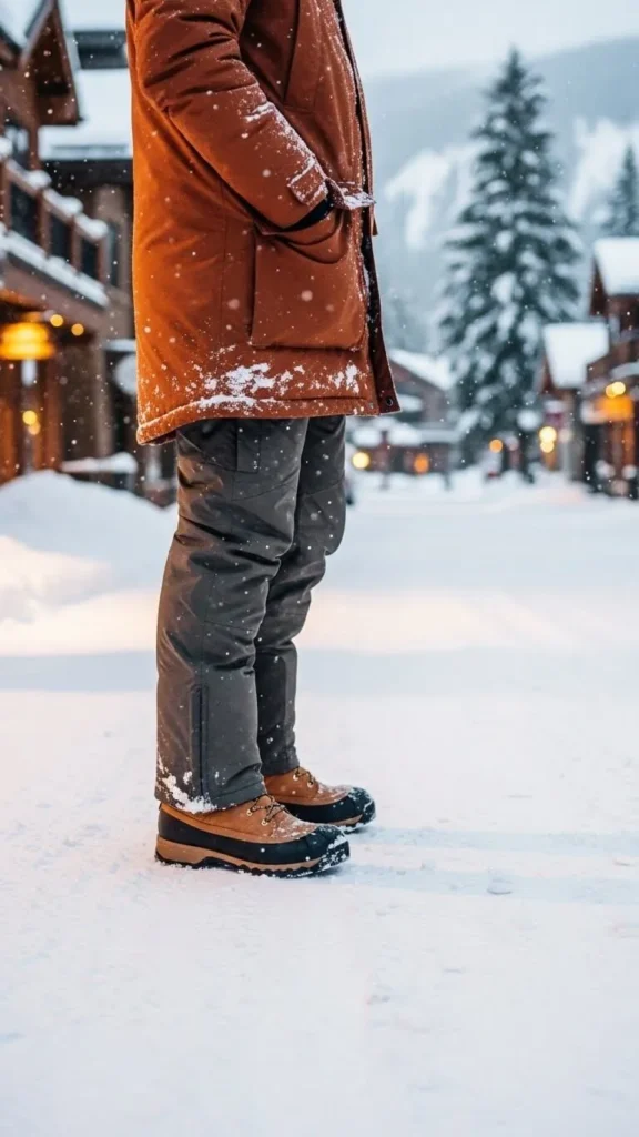 You don’t need to be skiing to borrow style from the slopes. Wear thermal leggings, a warm half-zip, and an insulated jacket. Add snow boots if you’ll be walking through icy streets. If you’re trying to save, look for off-brand thermals—they work just as well. Choose bright colours for a sporty look or neutrals for a calm vibe. This outfit keeps you warm and ready for winter adventures.
