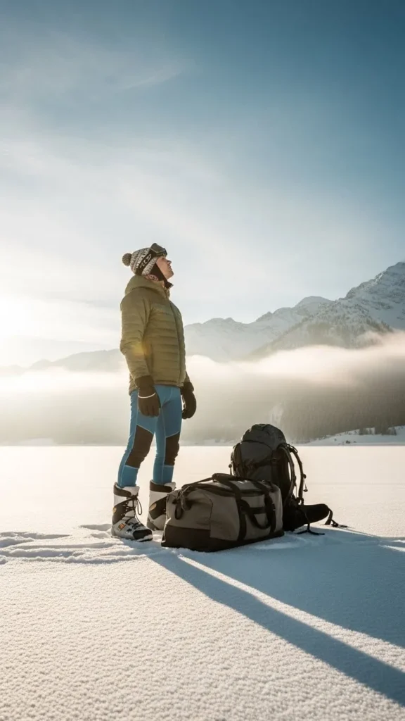 A longline puffer coat traps heat from shoulders to knees. It’s great for freezing destinations where wind chill hits hard. Wear it over simple layers—thermal top, mid-layer jumper, and comfy bottoms. Choose dark colours to hide travel marks. You can save money by buying last-season puffers, often discounted after early winter. Add waterproof boots and a beanie for full protection. This outfit keeps you warm even during long outdoor walks.