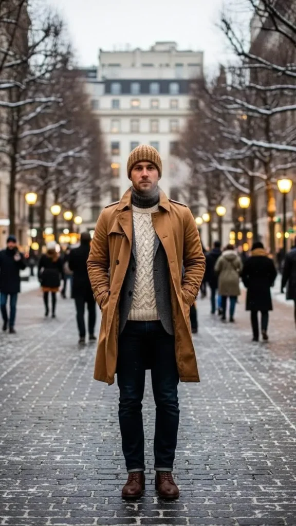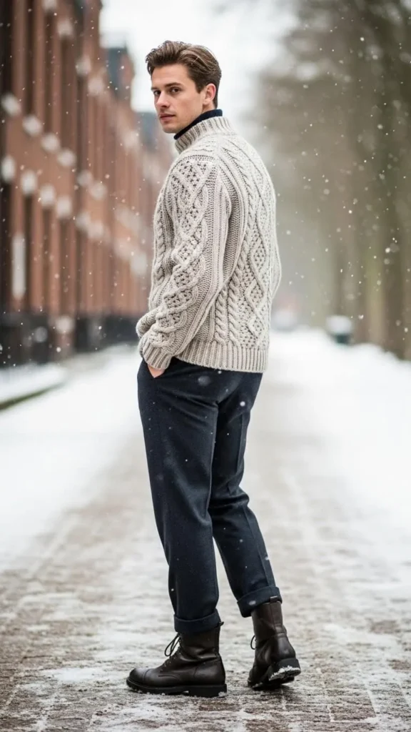 Cable knit sweaters provide warmth and classic winter style. Pair one with trousers or jeans and a warm coat. Add boots and a beanie for extra heat. If you want to save money, wash and shave old knits to refresh them. This outfit works for day trips, flights, and casual exploring.