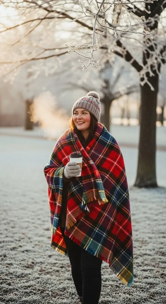 Blanket shawls are like walking in a hug. They’re great for layering or replacing a coat on mild days. Choose patterns like plaid or houndstooth. You can even make one from an old fleece throw—just hem the edges! Drape it over your shoulders or belt it around your waist for shape. It’s cozy and stylish in one move.