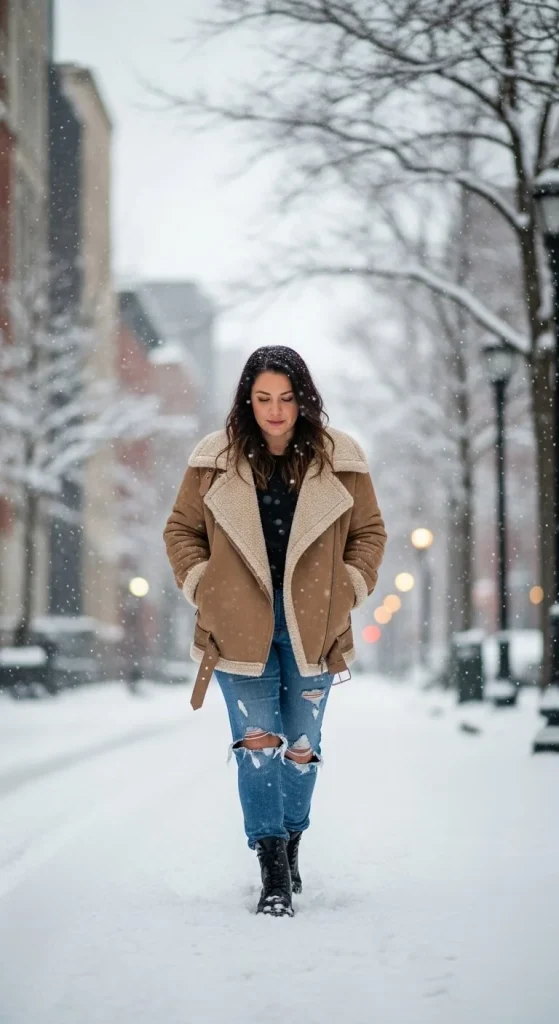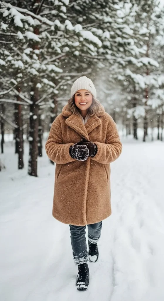 A faux shearling jacket keeps you warm without bulk. It’s easy to find affordable ones that still look high-end. Style it with jeans and ankle boots or even over dresses. Choose cream or brown tones for that soft winter glow.