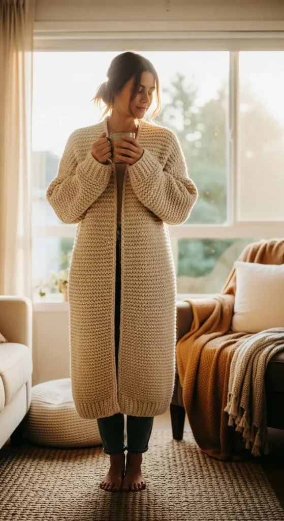 A long cardigan feels like a wearable blanket. It’s perfect for lazy weekends or quick grocery runs. Choose soft materials like cotton blend or wool mix. Style it with leggings or wide-leg pants.