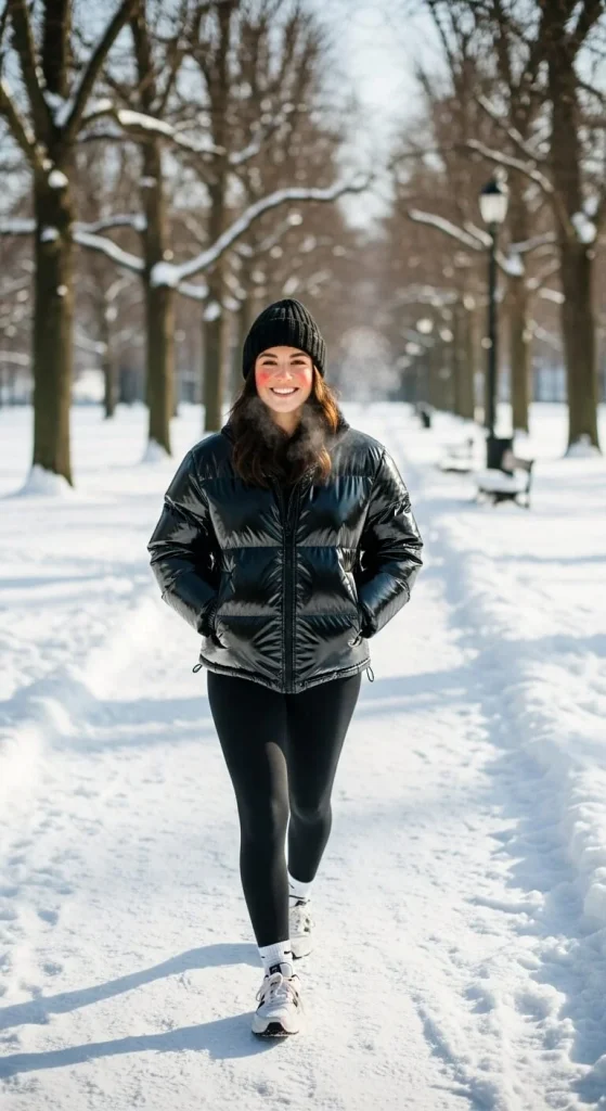 The puffer jacket is all about comfort. Choose one in black or metallic for a modern edge. It’s perfect for cold mornings when you want to feel warm but still look trendy. Combine it with leggings, chunky sneakers, and a simple crossbody bag. Add a bright beanie for a fun color pop. You can even DIY a cute zipper charm or iron-on patch to give it a personal touch.